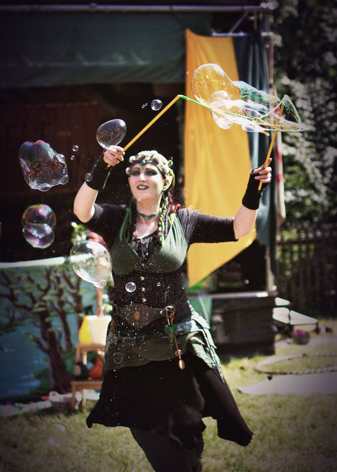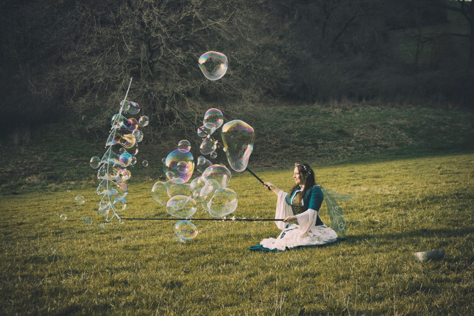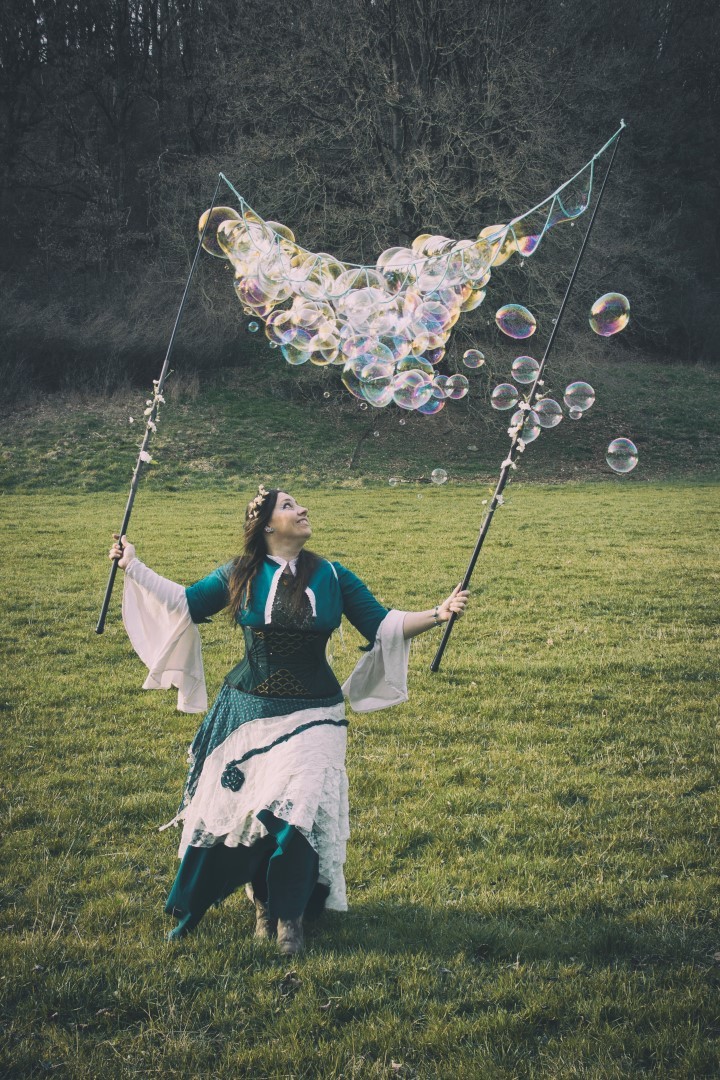 Elfen aus dem Feenreich zaubern magisches Wasser für große schillernde Seifenblasen mit denen sie die Kinder erfreuen. Sie bringen bis zu 10 Seifenblasenangeln mit damit die Kinder sich auch selbst im Seifenblasenmachen versuchen können.
